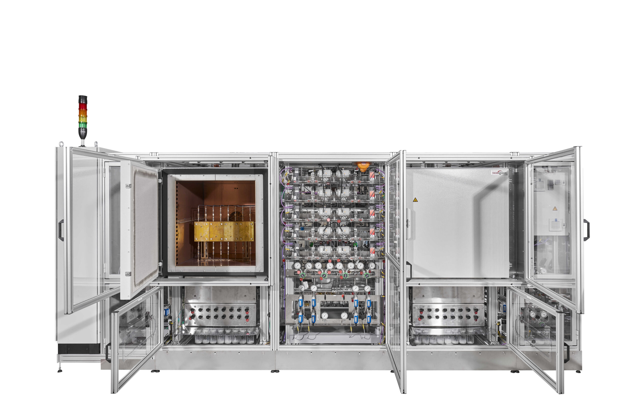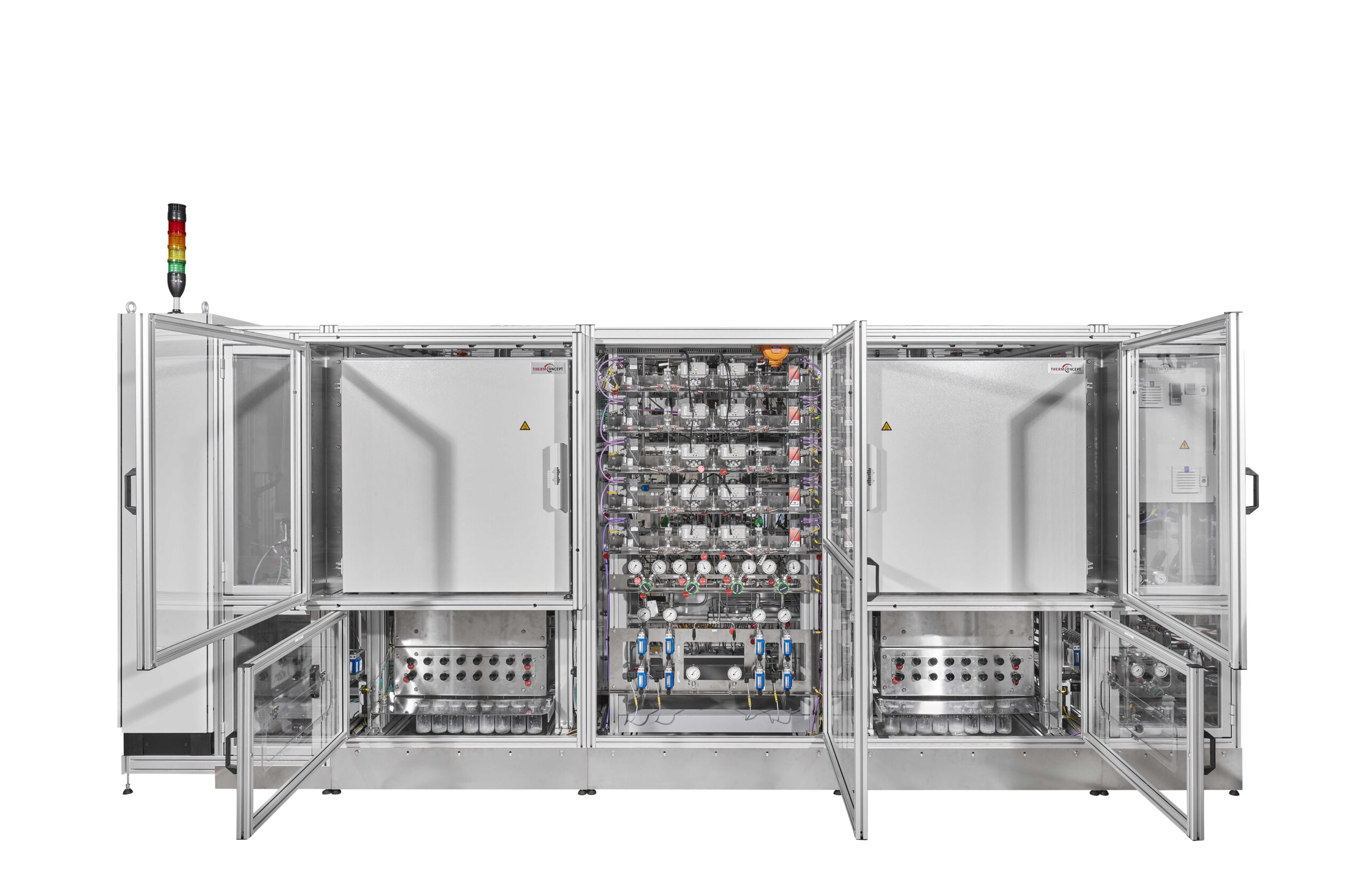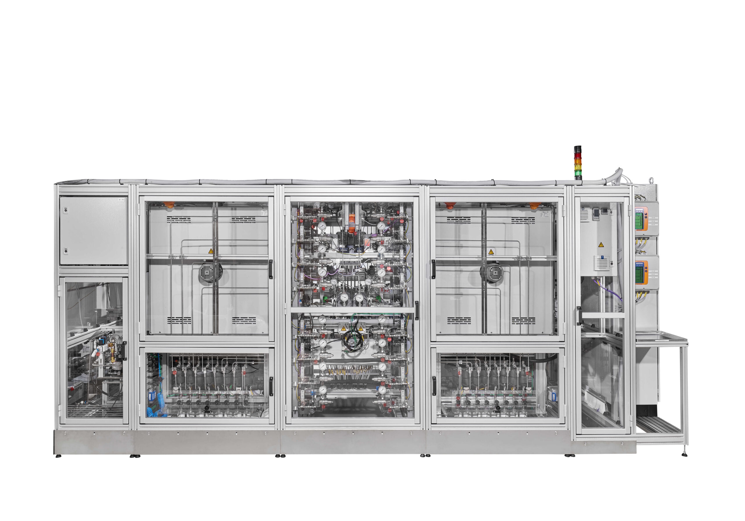 Diese Fischer-Tropsch-Versuchsanlage mit hohem Durchsatz dient hauptsächlich dem Testen von Katalysatoren für Qualitätskontrollmessungen im Bereich von mehreren hundert Milligramm. Die Anlage ist in zwei Achterblöcke unterteilt, die nahezu vollständig unabhängig voneinander betrieben werden können.  Es sind GHSV von 2000 bis 15000 1/h mit Katalysatorvolumina von 0,5 ml realisierbar. Die Anlage ist für den unbeaufsichtigten 24/7-Betrieb ausgelegt.