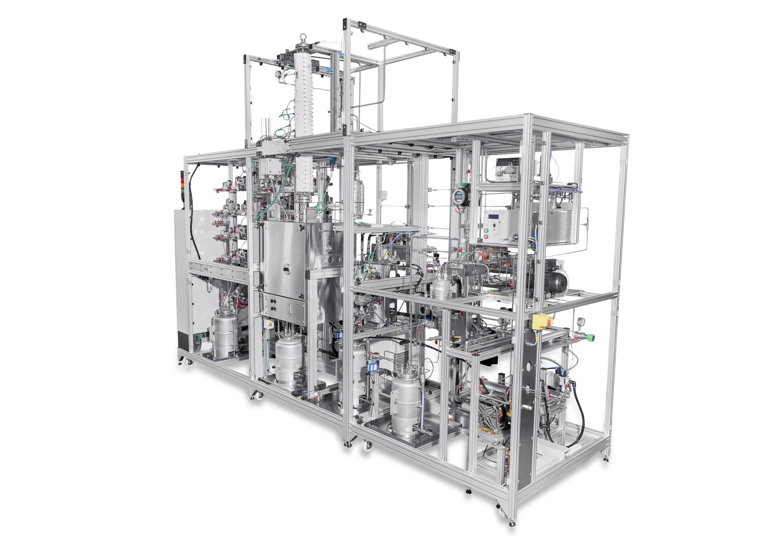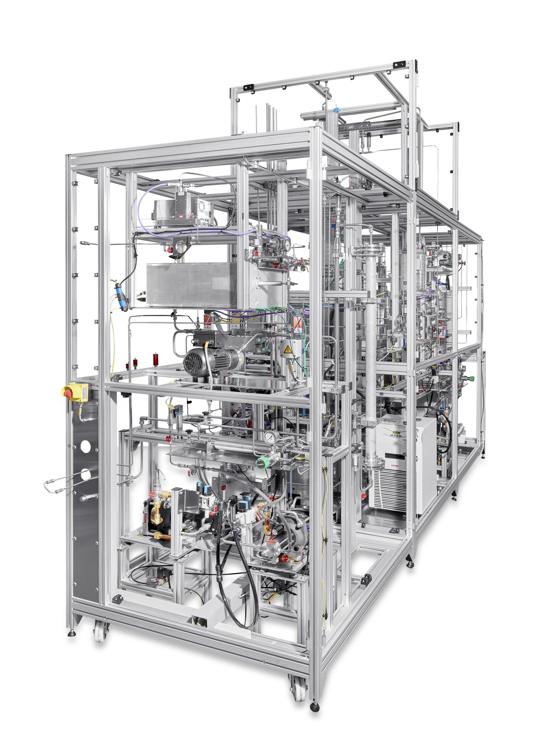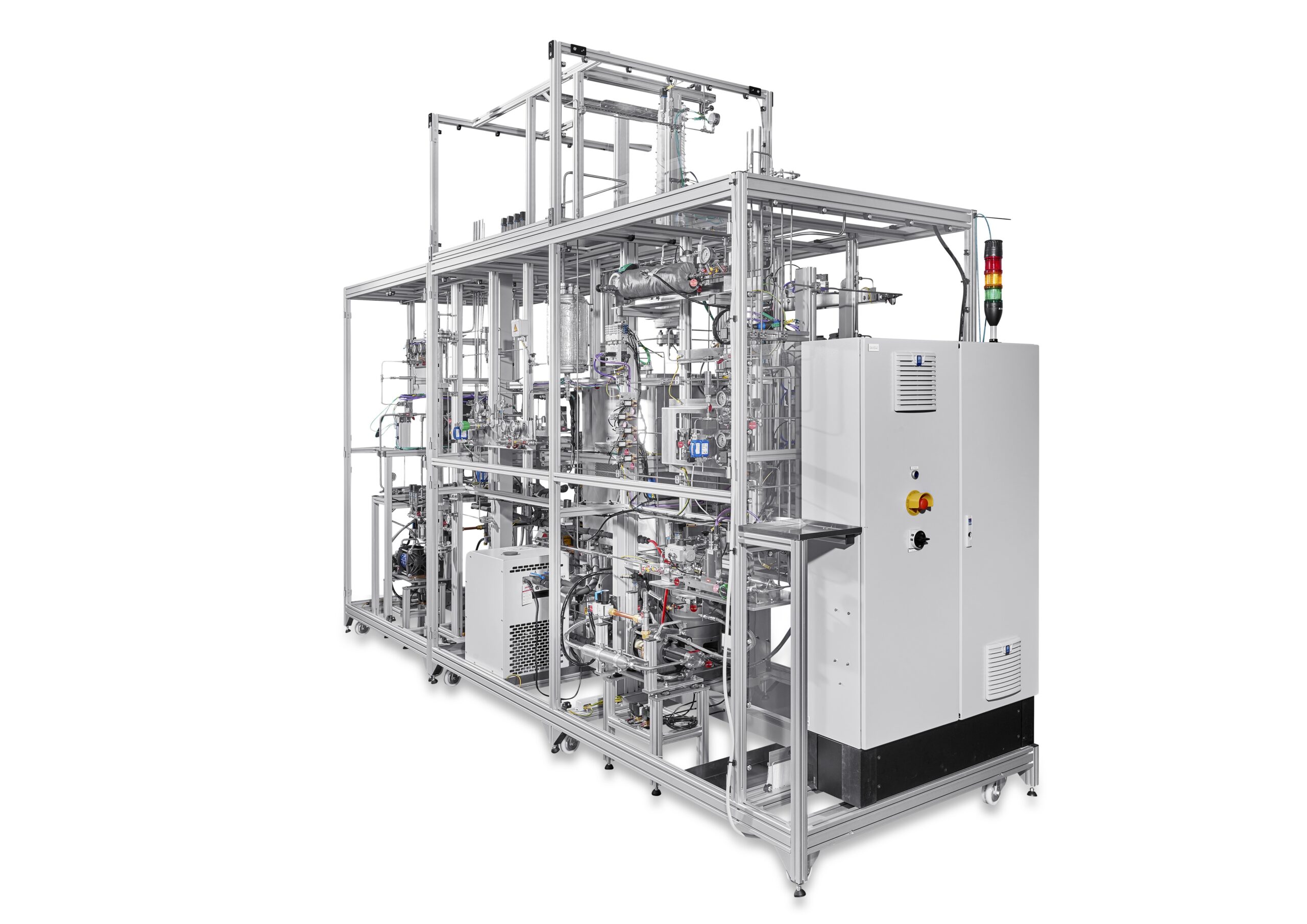 Mit dieser Scale-Up-Anlage können Synthesegas- und CO2-Umsatzreaktionen im Maßstab von 5-20 g Katalysatormenge getestet werden. Beispielreaktionen beinhalten Fischer-Tropsch, Methanol-Synthese, und die Herstellung von nachhaltigen Flugkraftstoffen (sustainable aviation fuels). Die Anlage verfügt über einen einzelnen Festbettreaktor, sowie eine Heiß- und Kaltproduktabtrennung und ist für den unbeaufsichtigten 24/7-Betrieb ausgelegt.